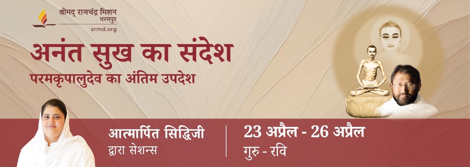 Shrimad Rajchandra Mission Dharampur (SRMD) is a global spiritual movement for inner transformation through wisdom, meditation, and selfless service. Inspired by the teachings of late 19th century self-realised saint and poet-philosopher Shrimad Rajchandraji, SRMD operates through 206 centers across six continents. Pujya Gurudevshri Rakeshji, enlightened master, spiritual visionary and founder of SRMD, blends scripture with experience and intellect with emotion to empower millions worldwide.